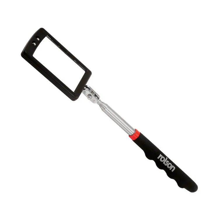 - Angle de vue reglable Tige telescopique, s’etend de 29 a 87cm Lumiere 2 LED avec interrupteur Necessite 2 piles CR2032 (incluses) Dimensions : 42 x 65mm