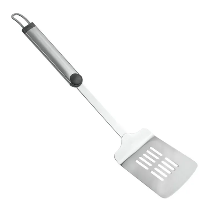 - Pelle a servir inox PLAZA-outil et manche inox-outil monibloc-anneau de suspension ovale-embout plastique-taille 35 cm