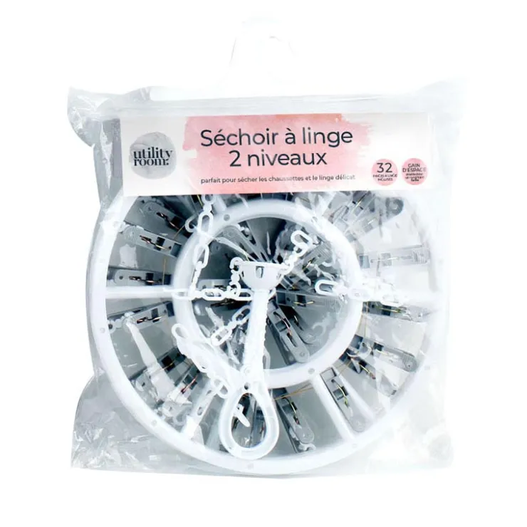 - 32 pinces a linge inclusesParfait pour secher les chaussettes et le linge delicatPliable pour un gain de place