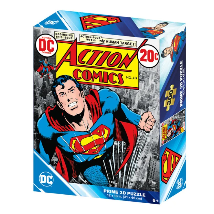 - Puzzle 300p lenticulaire Superman de la serie DC Comics et de la marque Prime 3D – Dimensions du puzzle monte : 31 x 46 cm – La surface lenticulaire du puzzle donne l’effet de s’animer au puzzle et invite l’enfant a entrer dans l’univers du puzzle – A pa